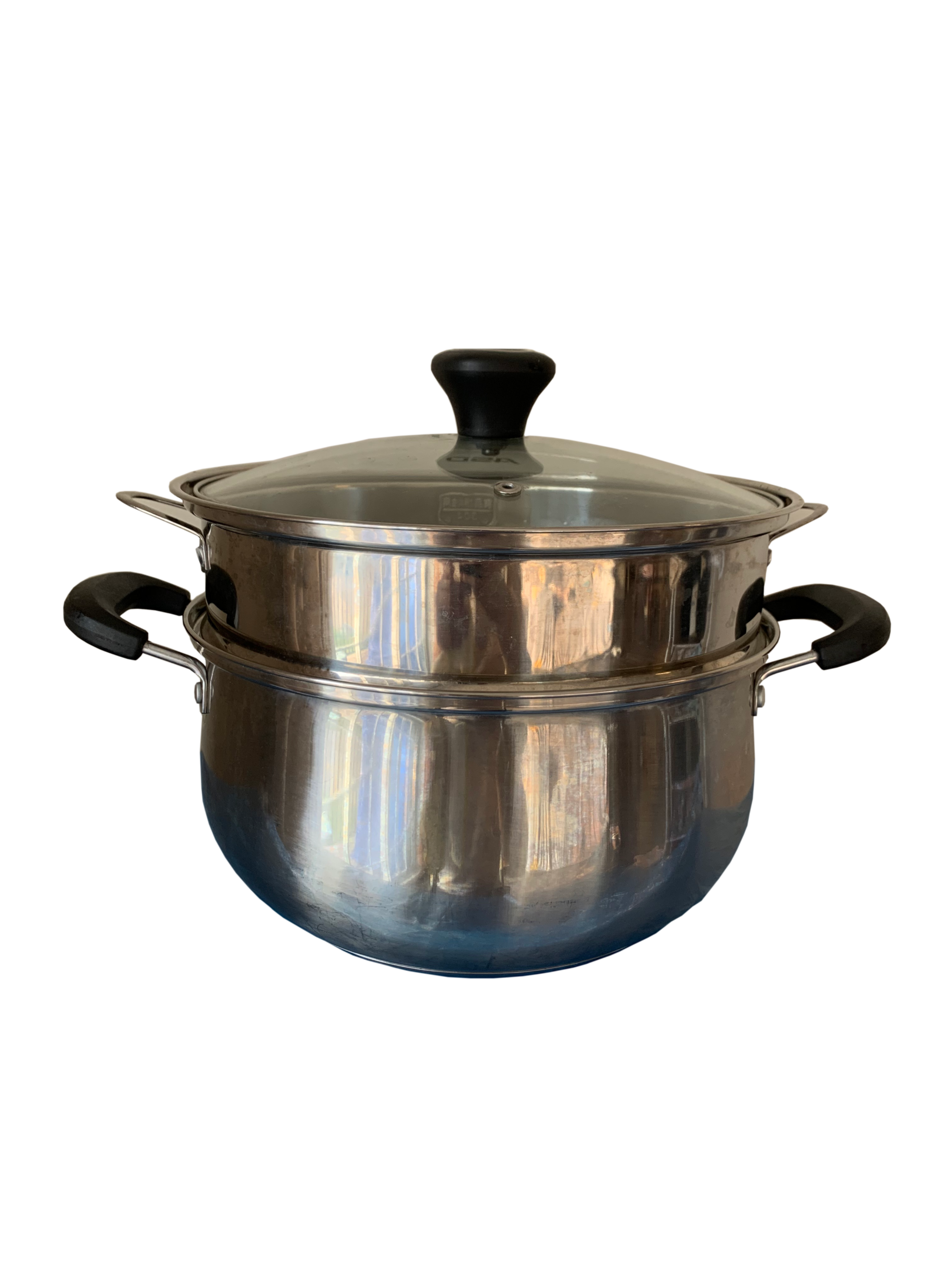 – Stainless steel steam pot with lid and steaming rack